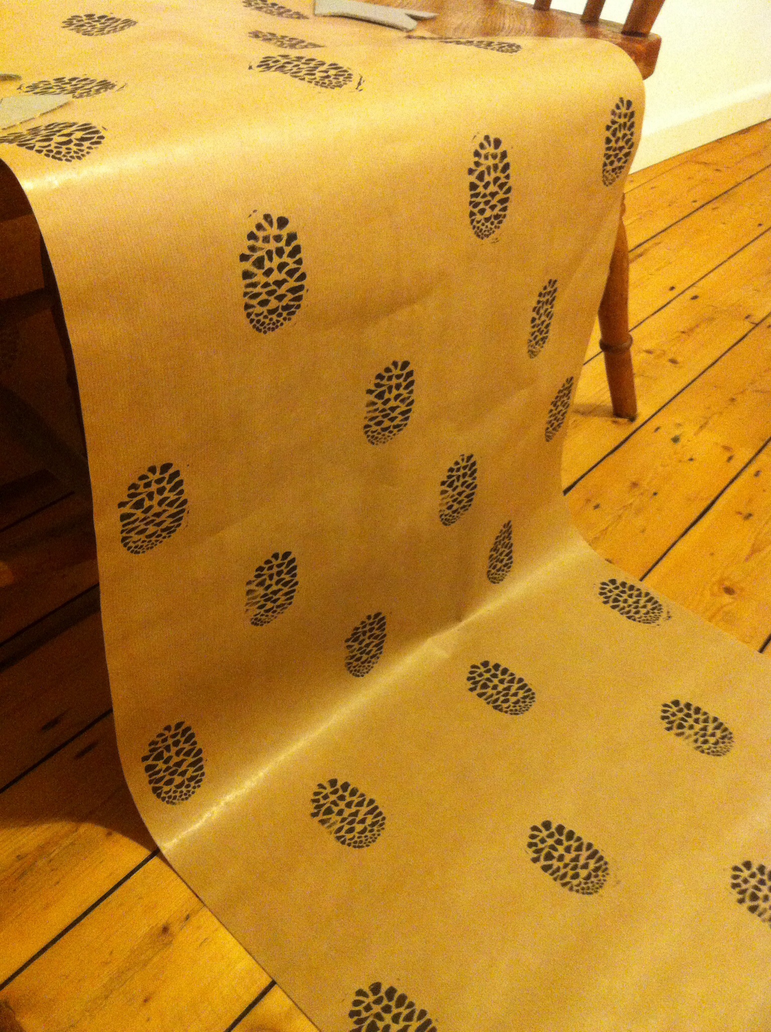 fir cone handprinted wrapping paper