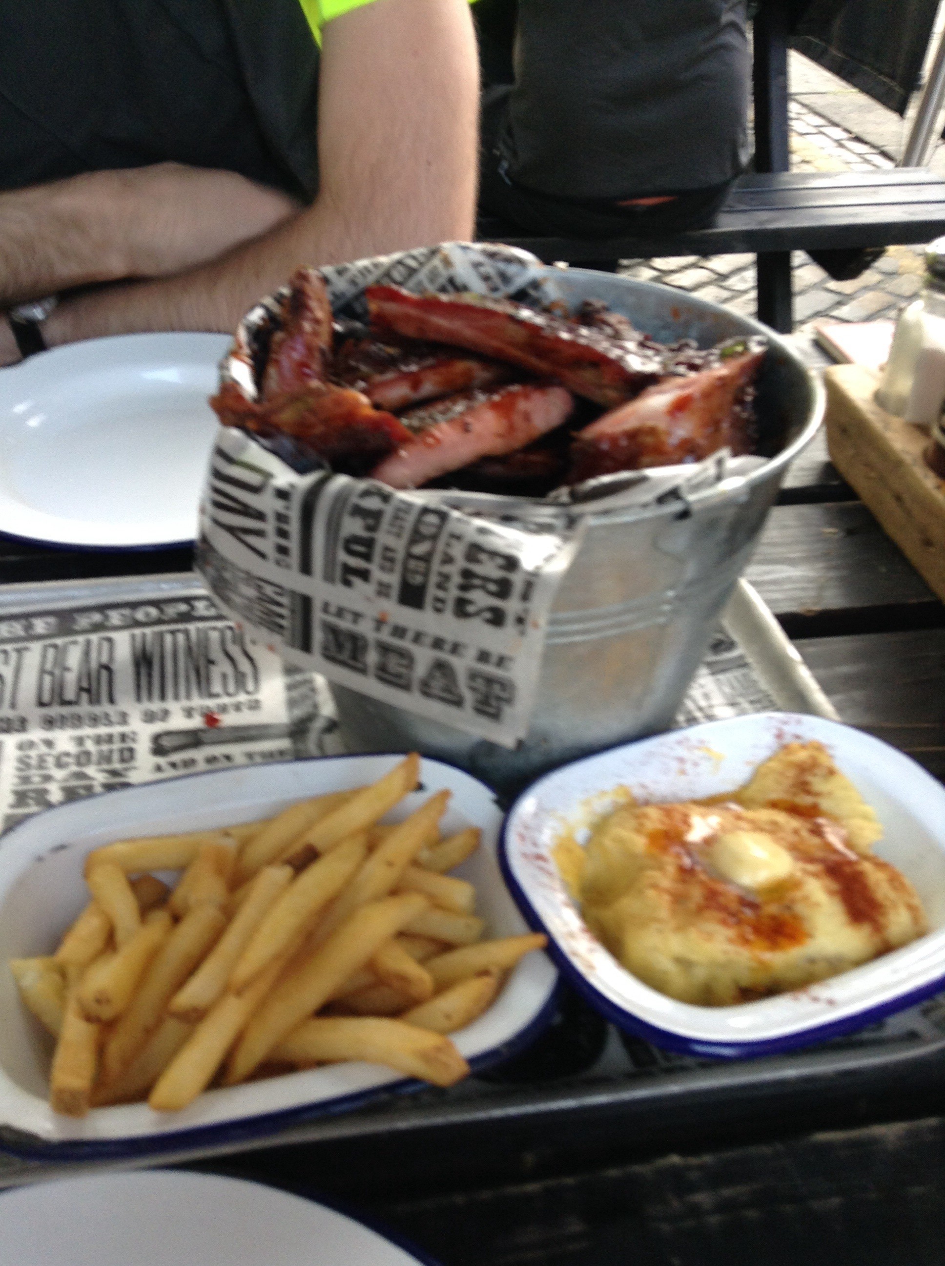 ribs, chips and grits